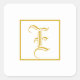 Formelles Goldmonogramm in einem quadratischen Rand kleinen Aufkleber. Gold Text mit weißem Hintergrund.