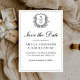Die Essenz der Eleganz mit einem formalen Wappen-Monogramm-Blumenmuster Save the Date Hochzeitsdesign. Diese elegante Mischung aus zeitlosen Blumenmotiven und einem personalisierten Monogramm-Wappen verleiht Ihrem Hochzeitsdekor und Ihrer Schreibwaren eine Touch Eleganz. Das Design ist ideal für Paare, die einen klassischen und dennoch eleganten Stil suchen, und verleiht dem Ganzen eine Atmosphäre von Anmut und Luxus. Ideal für feierliche Hochzeiten, wird diese kohäsive und zarte Ästhetik einen bleibenden Eindruck verlassen, der die Schönheit und Wichtigkeit Ihres besonderen Tages widerspiegelt.