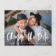 Trendy, stilvolle Hochzeitspostkarten mit dem Foto "Datum ändern" in einem weißen Pinsel-Skript-Overlay. Diese Postkarten zeigen Ihr beliebtes horizontales Verlobung-. Stellen Sie die Vorderseite des Fotos ein und ändern Sie die Datumskarte, indem Sie Ihre Namen, das Hochzeitdatum und Stadt/Staat hinzufügen. Auf der Rückseite der Postkarte finden Sie Rücksendeadresse, Namen, Hochzeitstermin, Hochzeitswebsite, etc.