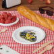 Ein Formel 5 Rennwagen, der mitfährt. Dieses Design wirkt auf diesen Paper-Tellern sehr effektiv