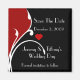 Dekorativer Art-Déco-Stil speichern Sie den Dattelmagneten rot und schwarz, mit einem roten Herz und einer weißen Fleur-Dekoration. Passen Sie den Text auf alles an, was Sie gewollt haben, um ihn für Sie persönlich zu machen.