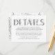 Formal Black Floral Letters Wedding Enclosure Card für Extra Details - ein handgezeichnetes Blumendetailgeflecht Hochzeitsbriefdesign mit Blume skizziert das Wort "DETAILS", mit Schrift-Handschrift für die Namen.