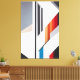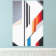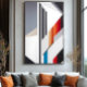 Winkellinien und geometrische Formen verflechten sich in einem Farbspiel und Texturen. Neutrale Farbtöne wie Weiß, Grau und Schwarz mit lebhaften Rottönen, tiefer Blues und warmen Farbtönen schaffen eine Komposition, die Modernität und Energie atmet. Jedes Element scheint sich in Harmonie zu bewegen und den Raum in eine Bühne der Kreativität zu verwandeln - ideal für Umgebungen, die nach Raffinesse und Dynamik suchen.