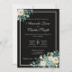 Schwarz formelle Hochzeitseinladung mit aquamarinem und cremefarbenem Blumenmuster