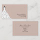 Eine offizielle Verschleißkarte mit Boutique-Visitenkarte, die auf einem Kleidungsformular auf Kleidung ein federhaftes Hochzeitskleid illustriert. Personalisieren Sie den Text auf der rechten Seite mit Ihren Kontaktinformationen.