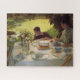 Dieses Design zeigt ein Gemälde des italienischen Künstlers Giuseppe de Nittis (1846-1884). Es zeigt eine Familie frühstücken an einem formellen Tisch im Garten. Eine Frau und ein kleiner Junge sitzen am Tisch, und es gibt einen leeren Platz, vielleicht, wo der Ehemann der Dame sitzt. Im Garten laufen Enten und Schwäne auf dem Gras, und der Junge versucht, einen der Vögel mit seinem Essen füttern. Die Familie isst aus feinen Porzellanplatten und auf dem Tisch ist weißes Leinen. Auf dem Tisch steht auch ein Strauß mit Blume aus einer Vase. Die ursprüngliche Kunst wurde 1883 von Giuseppe de Nittis gemalt.