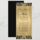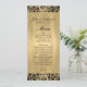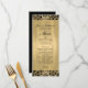Lange und magere goldene Hochzeitstischmenü fertig, mit Grafiken eines laky goldenen Musters über einem schwarzen Rand, oben und unten. Personalisieren Sie den schwarzen Text für Ihren besonderen Tag. Eine tolle Ergänzung zu unserem Formal Black and Gold Hochzeitsfest Set.