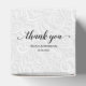 Elegantes Weiß auf weißem filigranem Druckmuster mit Ihren Namen und vielen Dank in schicker Schrift, diese 2" quadratischen Gastgeschenk-Boxen sind wunderschön für Gastgeschenke Hochzeiten, Brautparty-Favoriten oder jeden besondere Anlass.