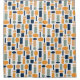 Dieser Duschvorhang hat ein modernes Design von Ovalen und Rechtecken in Mustern, die sich in der Gestaltung wiederholen.
