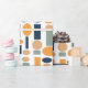 Dieses Verpackungspapier hat ein modernes Design von Ovalen und Rechtecken in Mustern, die sich im Design wiederholen.