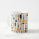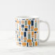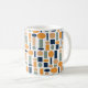 Diese Tasse hat ein modernes Design von Ovalen und Rechtecken in Mustern, die sich im Design wiederholen.