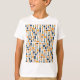 Der T - Shirt dieses Kindes hat ein modernes Design aus Ovalen und Rechtecken in Mustern, die sich im Design wiederholen.