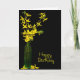 Birthday forsythia Bouquet in grüner Vase auf schwarz