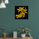 Dieses Poster mit feinen Kunstfotografien zeigt goldgelbe forsythia-Blume auf einem schwarzen Hintergrund. Forsythias sind einer der frühesten blühenden Büsche im Frühling. Wenn diese Blume ihre leuchtenden Goldblätter im Garten zeigt, wissen wir, dass der Winter ein weiteres Jahr lang vorbei ist.