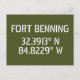 Längen- und Breitengradkoordinaten für Fort Benning - Kolumbus, Georgia Stift weißer Schriftart auf armeengrünem Hintergrund.