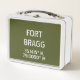 Längen- und Breitengradkoordinaten für Fort Bragg, in der Nähe von Fayetteville, weißer Schriftart im Stil von North Carolina Stencil auf army-grünem Hintergrund.