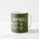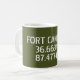 Längen- und Breitengradkoordinaten für Fort Campbell - liegt zwischen Clarksville TN und Hopkinsville KY Stencil im Weißen Schriftart auf armeischem grünem Hintergrund.