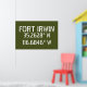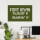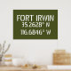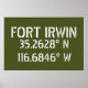 Längen- und Breitengradkoordinaten für Fort Irwin - befindet sich in der Wüste nahe Barstow, im kalifornischen Stift weißer Schriftart auf army grünem Hintergrund.