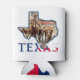 Kann kühler mit der texanischen Staatsflagge und einem Langhorn auf der einen Seite und der Fort Worth Cattle auf der anderen Seite. Die Farben Rot, Weiß und Blau sorgen für ein patriotisches Ambiente.