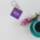 Das Glück begünstigt das mutige Weisheitssprichwort. Lila Schlüsselanhänger und weiße Typografie. Lassen Sie sich mit unseren inspirierenden Zitat-Geschenken verwöhnen - dem perfekten Taschenbegleiter.