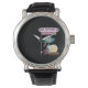 Uhr, Klassische Damenuhr mit schwarzen Lederarmband