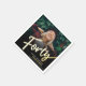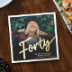 Forty black and shiny gold metallic affect script text photo napkins. Personalize this 40th birthday party script photo birthday napkin with your own birthday girls or boys name and party date, and a special photo. Other years and matching items are available. © Original design by Sarah Trett for www.mylittleeden.com on Zazzle.