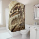 Dieser Duschvorhang hat ein Vogelfossilon darauf.