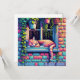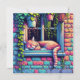 Ai Art zeigt eine schläfrige Katze auf einem Fenstersill, umgeben von hängenden Pflanze und Ziegelmauer. Niedliche Kunst für Pflanze- oder Katzenliebhaber.