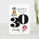 Eine lustige, benutzerdefinierte Foto 30. Geburtstagskarte mit einem individuellen Namen. Kühne Typografie des Zeitalters in Schwarz-Weiß. Personalisieren Sie den Ballon und Party Hut mit 2 benutzerdefinierten Fotos.