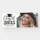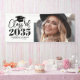 Dieses klassische und dennoch moderne Abschlussbanner ist die perfekte Möglichkeit, den Jahrgang 2026 zu feiern. Das Design ist mit den Abschlussdetails auf der linken Seite angeordnet, mit "Jahrgang 2026" in fettgedrucktem Schwarz und Weiß, akzentuiert mit eleganter Schrift. Ein Abschlussmützen-Symbol fügt einen festlichen Touch hinzu, während der Platz darunter für den Namen und die Schule des Absolventen genutzt werden kann, wodurch ein personalisiertes Zentrum für die Feier entsteht.