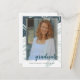 Eine moderne und stilvolle Abschluss-Postkarte aus Jenn's Emporium. Einfach ein eigenes Foto hinzufügen, das Jahr ändern, den Namen des Schülers und die Schule. Auf der Rückseite ist eine bereit, um Graduierungsparty Einladung mit Muster-Design anpassen.