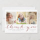 Danken schöne personalisierte Hand beschriftetes Imitat-Rosen-Goldfolienskript mit Collagen-Foto-Abschluss mit 3 Fotos Ihnen zu kardieren. Sie können ein personalisiertes drucken danken Ihnen auf der Rückseite oder verlassen freien Raum und Hand, Ihre Gewohnheit zu schreiben danken Ihnen Mitteilung für jeden Ihrer Abschluss-Partygäste. Entwurf durch Elke Clarke. Besichtigen Sie unser Geschäft www.zazzle.com/monogramgallery für mehr Entwürfe und Arten. Addieren Sie Ihre eigenen Fotos und Text.