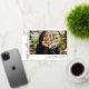 Eleganter, horizontaler Goldfolie-Abschluss-Einladung in Weiß personalisiert mit einem Foto auf der Abdeckung und zwei weiteren Fotos auf der Rückseite. Doppelseitige Abschluss-Einladung mit Goldfolie auf weißem Hintergrund bedruckt. 2 in 1 Abschluss Ankündigung und Einladung personalisiert mit Fotos und dem Namen des Absolventen in Goldfolie.