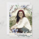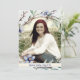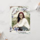 Ankündigung von Abschluss Foto mit botanischer, Filialen und Blätter Design. Fügen Sie ihr Foto auf die Vorderseite der Flachkarten, die gedruckt werden, oder mit der Möglichkeit zum Herunterladen. Ihr Name und ihre "Klasse von" am unteren Ende ist in einer modernen Schrift lila über ecru. Ankündigung und / oder Party Informationen wird auf der Rückseite der Schreibwaren und ist auch von grünen Ästen und blau - violett Blumen gerahmt.