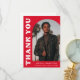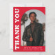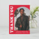 Stilvolle und trendige Abschluss Dankeschön-Karte mit dem Foto des Absolventen auf der Vorderseite mit einem Offsetbogen Foto Rahmen. "Danke" wird in fett weißem Retrobuchstaben auf rotem Hintergrund angezeigt. Personalisieren Sie die Vorderseite des Fotos Abschluss Dankeschön Karte durch Hinzufügen des Graduiertennamens, Schule und Abschluss Jahr. Die Karte kehrt zurück, um Ihre getippte oder handgeschriebene Nachricht anzuzeigen. Der rote Abschluss Dankeschön ist perfekt für Absolventen der Highschool und der Uni.