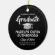 Erinnern Sie sich an den Erfolg des Absolventen mit einem maßgeschneiderten Foto Schwarz-Weiß-Abschluss Weihnachtsschmuck. Bild und Text sind einfach zu anpassen. Beinhaltet den Namen und den Abschluss der Schule, Glückwünsche, danke Mama und Papa, oder eine andere Botschaft Ihrer Wahl. Das Design zeichnet sich durch einen schwarzen Hintergrund, ein graues Imitat Silber-Folie Graduierungspapier, personalisierten modernen Typografen-Namen, Schule & Klassenjahr und ein Foto Ihrer Wahl aus, wie z.B. ein Seniorenbild oder ein Bild aus der Anlaufzeremonie. Macht eine nachdenkliche Geschenkidee und eine elegante Ergänzung zur Xmas-Wohngestaltung. Herzlichen Glückwunsch an den Absolventen!