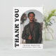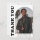 Stilvolle und trendige Abschluss Dankeschön-Karte mit dem Foto des Absolventen auf der Vorderseite mit einem Offsetbogen Foto Rahmen. "Danke" wird in fett schwarzen Retrobuchstaben auf weißem Hintergrund angezeigt. Personalisieren Sie die Vorderseite des Fotos Abschluss Dankeschön Karte durch Hinzufügen des Graduiertennamens, Schule und Abschluss Jahr. Die Karte kehrt zurück, um Ihre getippte oder handgeschriebene Nachricht anzuzeigen. Der weiße und schwarze Abschluss Dankeschön-Karte ist perfekt für Absolventen der Highschool und der Uni.