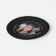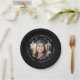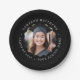Abschluss-Papier-Teller mit Foto in einem Rahmen mit einem Rahmen und einem benutzerdefinierten Text rund um das Foto. Weißer Text auf schwarzem oder benutzerdefiniertem Hintergrund.
