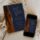 Diese elegante, moderne Save the Date-Karte verfügt über eine verbrannte, orange Aquarellfarbe, die mit Imitaten vergoldetem Glitzer bespannt wurde. Der goldfarbene Text erscheint auf einem marineblauen Hintergrund. Ersetzen Sie das Beispielbild auf der Rückseite einfach durch Ihr bevorzugtes vertikales Foto.