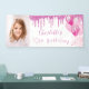 Für eine mädchenhafte 10. Geburtstagsfeier (oder jedes Alter). Ein stilvoller weißer Hintergrund. Dekoriert mit rosafarbenen Imitaten Glitzer Tropfen, Farbe Tropfen Look, Glitzer Tropfen und Ballons. Personalisieren und fügen Sie ein Foto und den Namen. Perfekt sowohl als Begrüßungsbanner als auch als Party. Verwenden Sie ein Foto in vertikaler/porträtgroßer Größe.