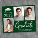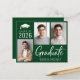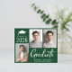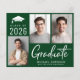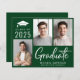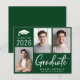 Moderne, umweltfreundliche Ankündigung eines Abschlusses mit 3 Fotos und "Graduate" in einem zeitgenössischen, fett-weißen Drehbuch. Fügen Sie den Namen, das Unterrichtsjahr und die Schule oder Universität in einfachen weißen Typografie.