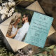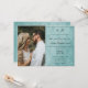 Zeitlose Eleganz trifft auf persönlichen Charme in diesem Foto Aquamarin Damask Monogram Wedding Einladung mit einem romantischen Damast-Muster, zartem Spitzen-Hintergrund und einem beliebten Foto von Braut und Bräutigam. Ein ausgeklügeltes Monogramm verleiht eine personalisierte Touch, während elegante Schriften und moderne Typografie Ihre Hochzeitsdetails stilvoll unterstreichen. Die gepflegte und einfache Gestaltung vereint verzierte Texturen mit zeitgenössischem Ambiente und ist somit die ideale Wahl für Paare, die eine raffinierte Mono-Hochzeitsarbeit mit klassischem Flair suchen.