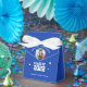 Foto aus blau-weißem Abschluss Geschenkschachtel
