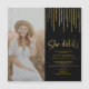 Beeindrucken Sie mit diesen Imitate Gold Glitzer Klasse von 2022 Graduierungsparty Einladungen auf einem schwarzen Hintergrund. Personalisieren Sie Ihre wichtigen Daten einfach mit Ihrem Foto Ihrer Wahl. Ideal für Hochzeiten- und Kollegialfeiern.
