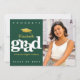 Mit dieser atemberaubenden, einfachen, modernen, personalisierten Ankündigung kündigen Sie an, dass Ihr Lieblingsgrad ihren Meilenstein erreicht hat. Fett, grafisch, weiß Typografie und ein Imitat goldenes Folienkopfsymbol überlagert einen Jäger grünen Hintergrund. Fügen Sie auf der rechten Seite ein Foto Ihrer Wahl hinzu. Personalisieren Sie den benutzerdefinierten Text mit dem Namen, dem Namen der Schule und dem Unterrichtsjahr Ihres Absolventen. In dieser trendigen und stilvollen Kollektion stehen Ihnen auch passende und koordinierende Dankeschön-Karten, Oberkappen, Ventilatoren, Servietten, Teller, Banner und andere Abschluss-Goodies zur Verfügung. Garantiert, um ihren besonderen Anlässen stilvollen Spaß zu bieten! Ersetzen Sie das Foto einfach durch eines Ihrer eigenen, geben Sie den Namen Ihres Abschlusses, den Namen der Schule und das Jahr der Klasse ein, und Sie können diese Ankündigung des Abschlusses ganz einfach personalisieren. Bitte schicken Sie mir eine Nachricht mit Fragen oder Wünschen.