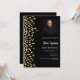 Modernes, elegantes und einladendes Hotel. Ein schwarzer Hintergrund mit goldenen Imitaten Konfetti. Personalisieren und fügen Sie Foto, einen Namen und Party Details. Weißer Text.