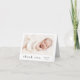 Ein einfaches Type Foto Baby Dankeschön-Karte mit Foto auf der Vorderseite und einem vollständigen Namen Header und persönliche Nachricht aus der Familie auf der Innenseite. Klicken Sie auf die Schaltfläche Bearbeiten, um dieses Design mit Ihren Fotos und Details anzupassen.