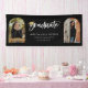 Spielvolles weißes Drehbuch mit goldenem Farbabstufungs-Cap-Akzent, Bogenrahmen 2 Foto Abschluss Banner. Funktionen, schwarzer Hintergrund.
