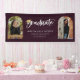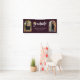 Spielvolles weißes Drehbuch mit goldenem Farbabstufungs-Cap-Akzent, Bogenrahmen 2 Foto Abschluss Banner. Funktionen, dunkler lila Hintergrund.