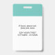 Dieses Abzeichen für den benutzerdefinierten Mitarbeiternamen ist mit einem Foto, einem Barcode-Scanner und einem Firmenlogo leicht anpassbar. Ein einfaches, weißes und aquamarines Business-Design mit völlig einstellbaren Vorder- und Rücken-Größen, einfach und zeitgemäßen Sans-Serif-Schriftart und poliertem Aussehen, das mit einem Lanyard, Metallklammer oder Retraktable erhältlich ist. Es gibt keine Mindestbestellmenge.
